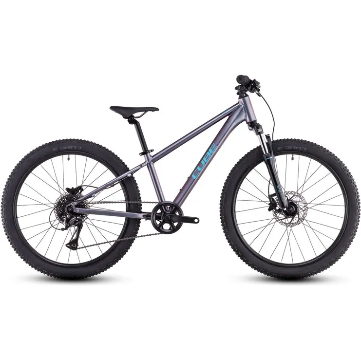 Ställ en fråga om Barncykel Cube Acid 240 Disc Galactic/CyanUnderhållande MTB för kräsna juniorer som älskar äventyrlig cykling