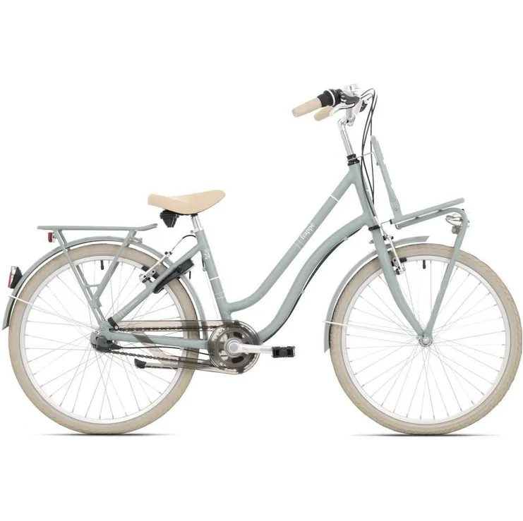 Letar du efter en 3-växlad juniorcykel med klassisk design och pålitlig prestanda så ska du ta en extra titt den eleganta Frappe FCL 24. Det här är en pålitlig barncykel med traditionella former som fungerar lika bra för avslappnade turer till lekparken som för lite mera äventyrlig cykling på böljande grusvägar. Den är en bekväm modell med en avslappnad körställning som skapar en tydlig vy över omgivningen, vilket kan vara praktiskt när medtrafikanterna utgörs av stissiga fartdårar. En okomplicerat modell med generösa lastutrymmen där både helheten och varje liten detalj andas kvalitet och pålitlig funktionalitet. Ett underhållande transportmedel med modern färgsättning och klassiska linjer för juniorer som ställer höga krav på både design, funktion, pålitlighet och komfort.