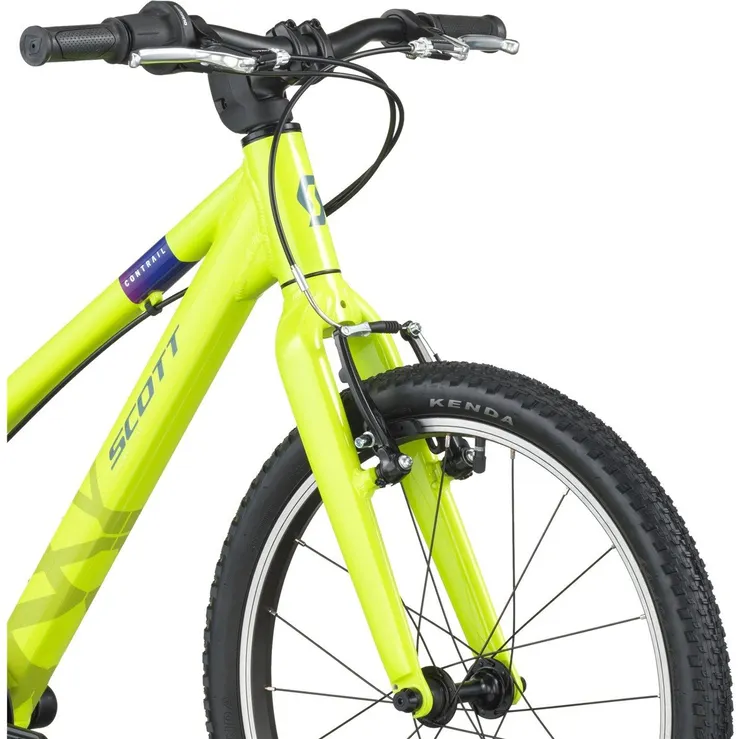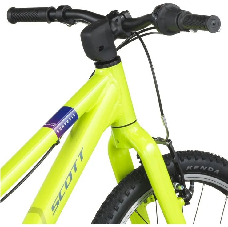 Ställ en fråga om Barncykel Scott Contrail 200 Sulphur GreenTuff juniorcykel med helt rätt attityd, snygg design och fokus på låg vikt