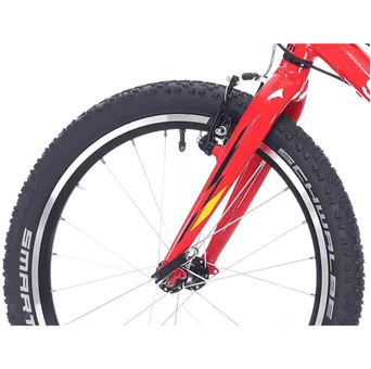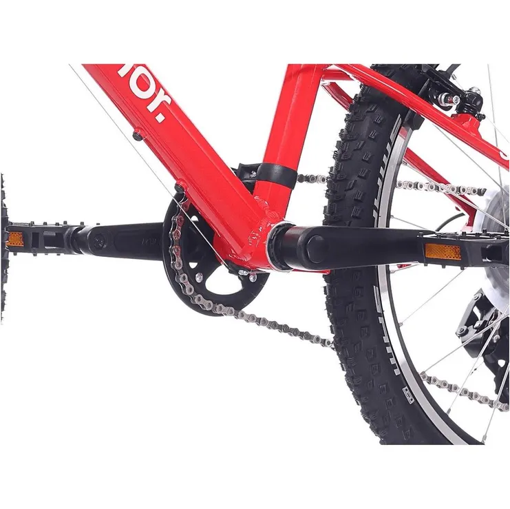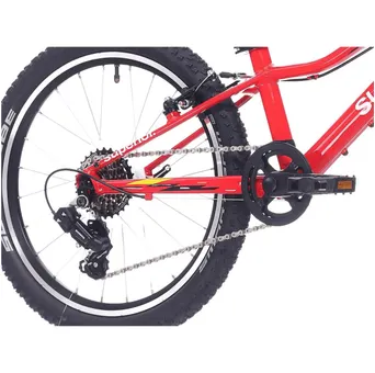 En kraftigt slopad ram kombinerat med ett rakt MTB-styre ger en bekvämt upprätt körställning, vilket i sin tur ger barnet massor av kontroll och riktigt bra uppsikt över omgivningen. Lägg därtill ett par robusta 20-tummare med greppsäkra kvalitetsdäck från Schwalbe (Smart Sam) med imponerande framkomlighet och ett par lätthanterliga v-bromsar med reglage som är fullt anpassade för lite mindre händer, vilket ytterligare ökar säkerheten.