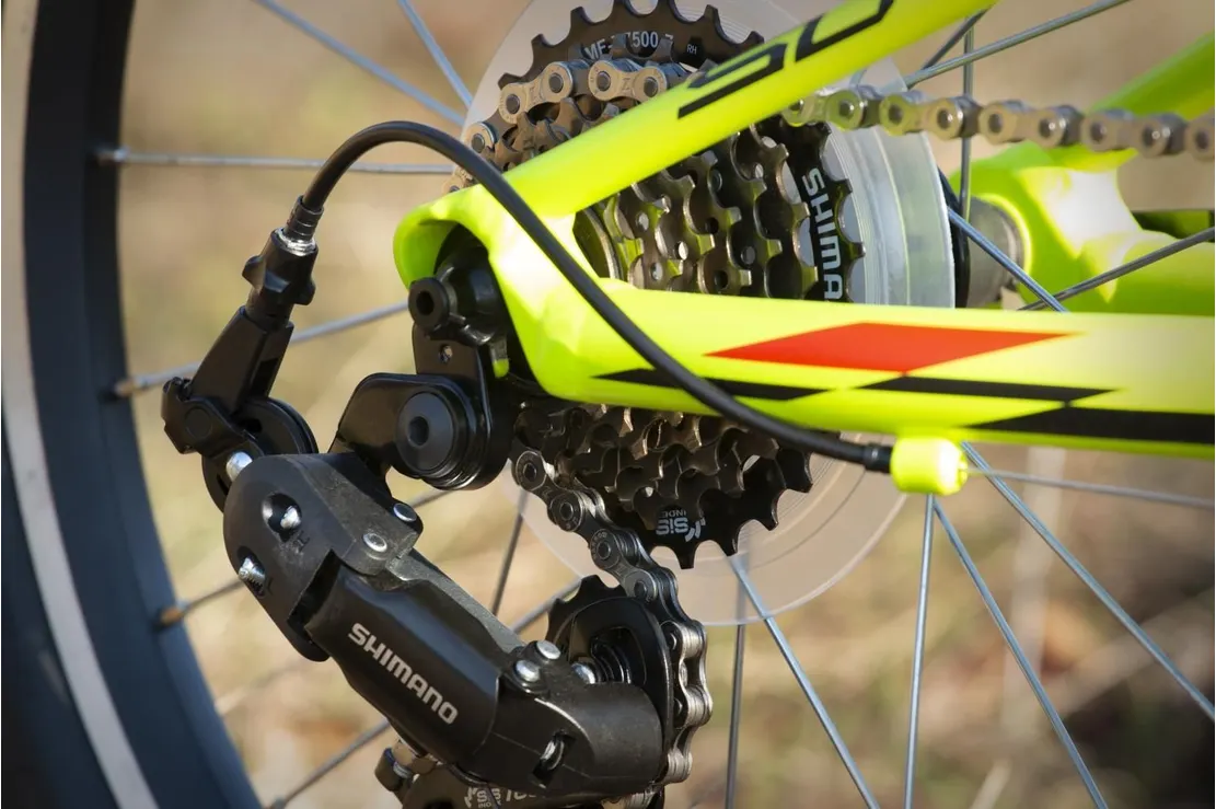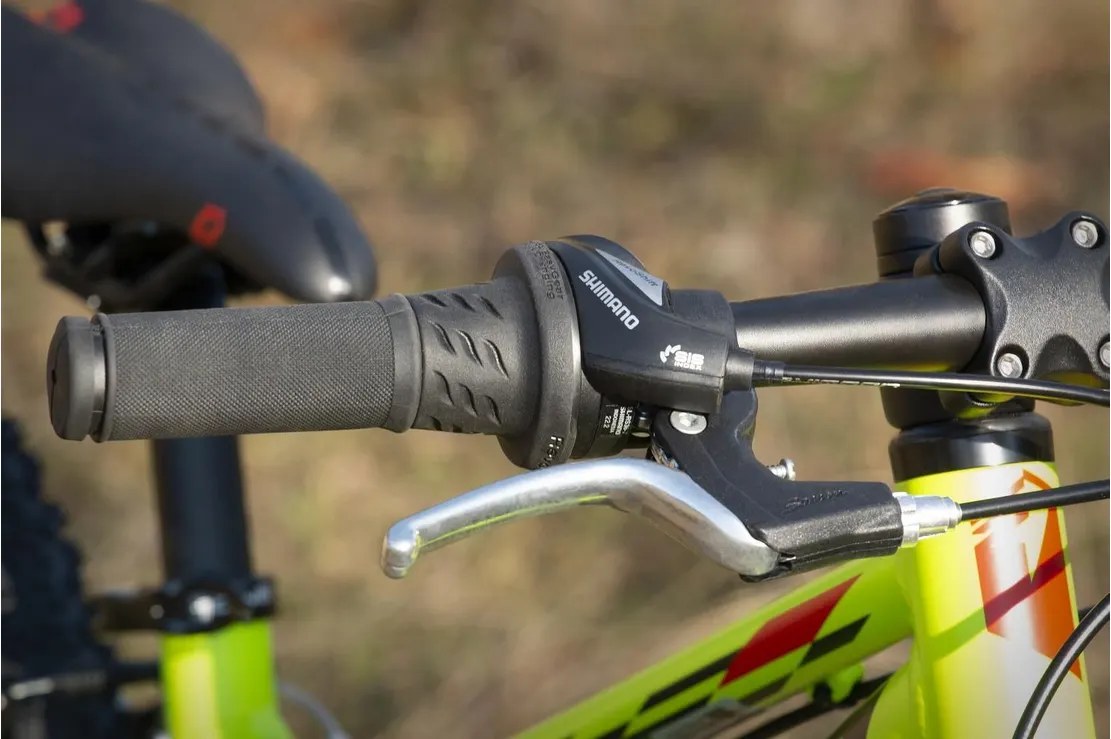 Smått svindlande farter uppnås med hjälp av en 7-växlad drivlina från Shimano (Tourney) med ett brett register, vilket i praktiken ser till att barnet utan problem kan hänga med både i varierande tempon och i olika förhållanden. Växlarna hanteras dessutom via ett lätthanterligt och funktionellt vridreglage, vilket är idealiskt för barnens lite mindre händer.