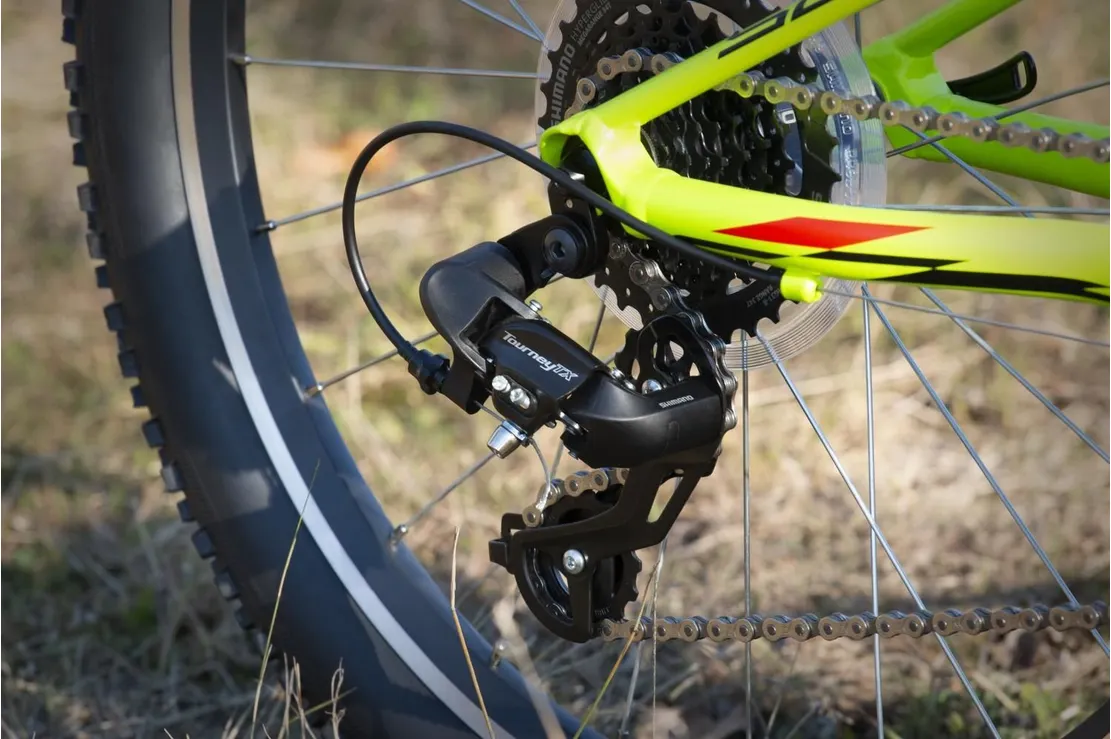 Smått svindlande farter uppnås med hjälp av en 8-växlad drivlina från Shimano (Tourney) med ett brett register, vilket i praktiken ser till att man utan problem kan hänga med både i varierande tempon och i olika förhållanden. Växlarna hanteras dessutom via ett lätthanterligt och funktionellt vridreglage, vilket är idealiskt för juniorernas lite mindre händer.