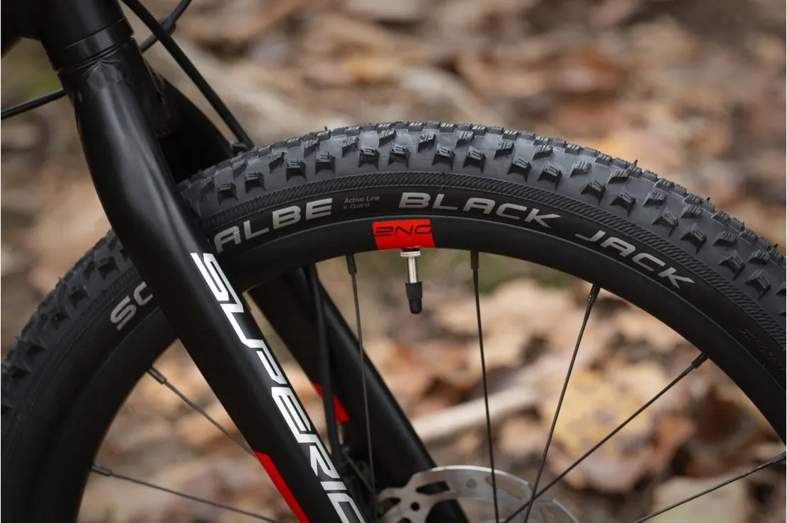 - Robust hjulset med kvalitetsgummin från Schwalbe (Black Jack) som klarar de flesta typer av underlag