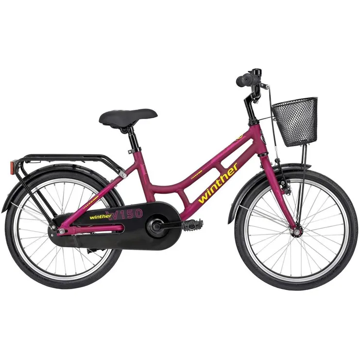 Ställ en fråga om Barncykel Winther 150 lila 18"Underhållande, tålig och välutrustad modell för framtidens stjärnskott