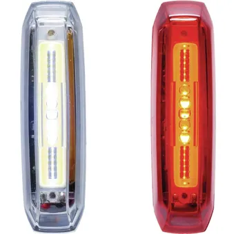 Abus Lyra USB är ett smidigt belysningsset som ger bra synlighet i trafiken. Ljusstyrkan är 80 lumen framåt och 35 lumen bakåt, vilket gör den perfekt för stadskörning. Lampan har en batteritid på minst 5 timmar och laddas snabbt på 2,5–3 timmar via USB. Laddkabel ingår.