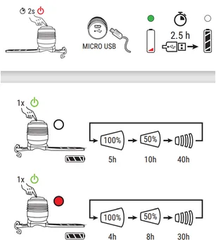 - Varje lampa drivs av uppladdningsbara batterier (Lithium polymer 3.7 V/220 mAh)