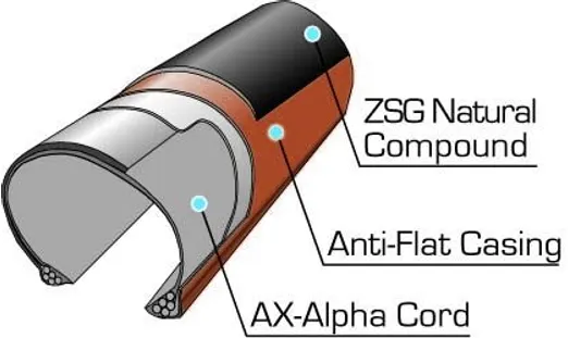 Däcket har ZSG (Zero Slip Grip) Natural Compound, en gummiblandning med samma låga rullmotstånd som den högklassiga Ultima-blandningen. Materialets förbättrade slitstyrka gör det perfekt som ett robust träningsdäck med en utmärkt körkänsla.