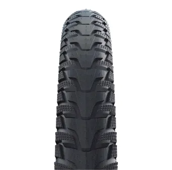Ställ en fråga om Cykeldäck Schwalbe Energizer Plus Tour ADDIX E GreenGuard 37-622 (28x1.40") Svart/ReflexMiljövänliga och slitstarka Schwalbe Energizer Plus Tour ADDIX E GreenGuard är speciellt utvecklat för elcyklar och är extremt populärt bland kräsna elcyklister som prioriterar maximal framkomlighet på allt från asfalt till betydligt stökigare underlag. Den högklassiga gummiblandningen ger däcket låg friktion, bra grepp och skapar en underbart dynamisk känsla mot underlaget. Det betyder full kontroll och massor av trygghet - även när det går undan i kurvorna. Däcket är även ECE-R75-märkt och har certifierats för användning på snabbare elcyklar, upp till hela 50 km/h.