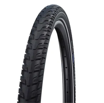 Ställ en fråga om Cykeldäck Schwalbe Energizer Plus Tour ADDIX E GreenGuard 47-622 (28x1.75") Svart/ReflexMiljövänliga och slitstarka Schwalbe Energizer Plus Tour ADDIX E GreenGuard är speciellt utvecklat för elcyklar och är extremt populärt bland kräsna elcyklister som prioriterar maximal framkomlighet på allt från asfalt till betydligt stökigare underlag. Den högklassiga gummiblandningen ger däcket låg friktion, bra grepp och skapar en underbart dynamisk känsla mot underlaget. Det betyder full kontroll och massor av trygghet - även när det går undan i kurvorna. Däcket är även ECE-R75-märkt och har certifierats för användning på snabbare elcyklar, upp till hela 50 km/h.