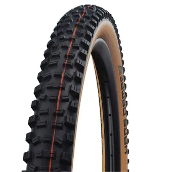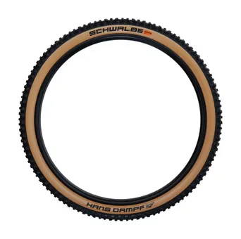 Ställ en fråga om Cykeldäck Schwalbe Hans Dampf ADDIX Soft Super Trail TLE 65-584 (27.5x2.60") classic sidewall VikbartNär tyskarna skräddarsyr ett högklassigt endurodäck med målsättningen att maximera leendet på dina läppar så blir resultatet något så skönklingande som Schwalbe Hans Dampf ADDIX Soft Super Trail TLE ... det där med namnet kanske inte rimmar fullt ut, men den delen där det handlar om leendet på dina läppar stämmer till 100%! Han(s) ger dig tillgång till extremt respektingivande fartprestanda, så att du kan köra med full kontroll både i riktigt stökig terräng och på den moderna typen av flödande singletracks, och givetvis med ett avslappnat leende på läpparna!