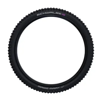 Ställ en fråga om Cykeldäck Schwalbe Magic Mary ADDIX Soft Super Trail TLE 62-622 (29x2.40") Svart VikbartEn av storfavoriterna bland oss som helst kör utför heter Schwalbe Magic Mary ADDIX Soft Super Trail TLE, och det gäller nästan oavsett om det är Enduro, Gravity eller Downhill som står på schemat för dagen. Hon är det optimala valet för nästan alla typer av utmanande spår med ordentlig lutning, främst tack vare kombinationen av galet imponerande grepp i kurvorna och en respektingivande bromskraft när det behövs som mest. En nästan självklar kombo är att köra som framdäck henne ihop med ett Big Betty som bakdäck, som ju har en något grövre struktur och lite mera fokus på grepp.