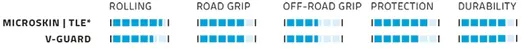 - Design med en dynamiskt progressiv profil med små sidodobbar och en slitbana som levererar lågt rullmotstånd
