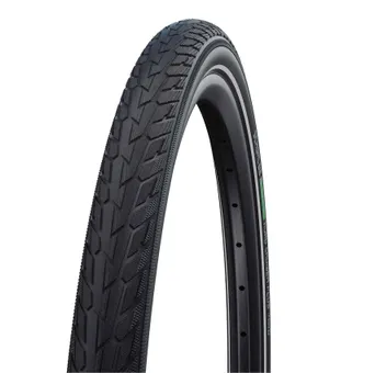Ställ en fråga om Cykeldäck Schwalbe Road Cruiser Plus Green Compound PunctureGuard 47-507 (24x1.75") Svart/ReflexMiljövänliga storsäljaren Schwalbe Road Cruiser Plus Green Compound PunctureGuard är en prisvärd klassiker som med självsäkert kan luta sig mot nästan två decennier av enorm popularitet bland cyklister som helst håller till i, eller runt omkring staden. Däcket har en beprövad struktur med ett brett register som levererar pålitlig prestanda både när det gäller grepp och slitstyrka. Ett imponerande rappt däck som kombinerar en tydligt markerad slitbana med en modern gummiblandning som består av återvunnet material och ger däcket dess mångsidiga karaktär.