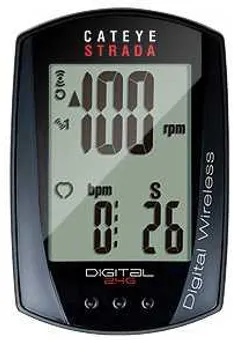 Ställ en fråga om Cykeldator Cateye Strada Cc-Rd410DwTrådlös med bakgrundsbelysning, 9 Funktioner: Aktuell hastighet, Medelhastighet, Vägmätare, Maxhastighet, Tripp distans 1 & 2 , Tidtagning, Klocka,Trådlös kadens (Pedalvarv), 2 hjuldimensioner kan lagras, Automatisk start/stoppfunktion.