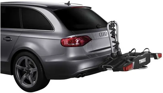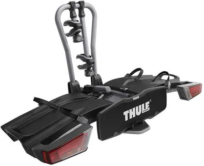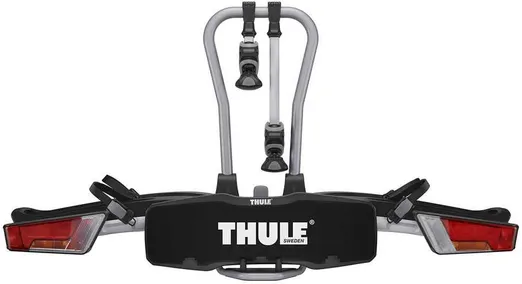 Thules mest praktiska bakmonterade cykelhållare för alla typer av cyklar. Du monterar enkelt denna cykelhållare på några sekunder i två enkla steg: fäst den på dragkroken och vik ut den. Om du har ont om utrymme är detta den minsta modellen.