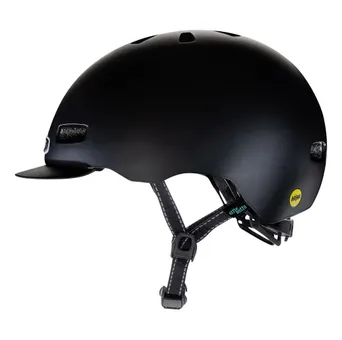 Ställ en fråga om Cykelhjälm Nutcase Street MIPS matt svartLetar du efter en stilren kvalitetshjälm för dagliga pendling så är galet snygga Nutcase Street MIPS ett nästan självklart val. En funktionell och föredömligt okomplicerad hjälm med tydligt urban design och imponerande hög komfort som ger dig ett högklassigt skydd. Hjälmens inre är tillverkad i lätt EPS och det yttre skalet är tillverkat i tålig ABS, vilket sammantaget ser till att hjälmen klarar av vardagliga smockor och normalt slitage utan att den varken känns tung eller klumpig.