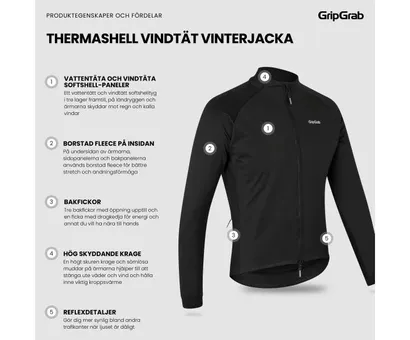 Ställ en fråga om GripGrab PACR vindtät vinterjacka BlackNär temperaturen sjunker tar du fram den vindtäta GripGrab ThermaShell Windproof Winter, denna vinterjacka i softshell håller dig varm och beväm under kalla cykelturer.