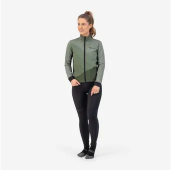 Ställ en fråga om Cykeljacka Rogelli Farah Women GrönKan du redan se dig själv cykla genom de schweiziska Alperna, precis som våra modeller? I Farah vinterjacka med subtilt tryck av grafiska bergstoppar är du redo att möta den bitande kylan i vinter. Faktum är att vår Farah vinterjacka är vindtät tack vare Dynashield 5000-membranet som blockerar vinden, men samtidigt är tillräckligt andningsbar. Under en intensiv cykeltur mot vinden regleras kroppstemperaturen optimalt genom att låta kroppen förlora överskottsvärme genom den ventilerande ryggpanelen.