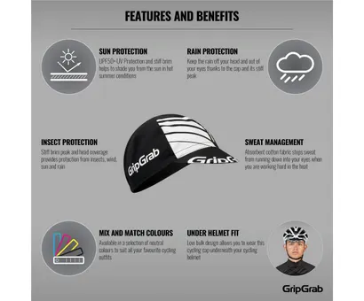Ställ en fråga om Cykelkeps Gripgrab Classic Cycling Cap svart/vitTidlösa GripGrab Classic Cycling Cap är en cykelkeps i bomull som skyddar huvudet från sol, vind, regn, sol och annat skräp. Den klassiska designen är både tuff, snygg och kompletterar vilken cykelklädsel som helst.
