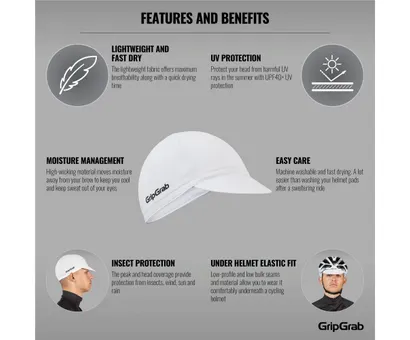Cykelkepsen GripGrab Lightweight Summer Cycling Cap förhindra effektivt att svetten rinner ner i ögonen och skyddar dessutom ditt huvud från skadliga UV-strålar. Modell med klassisk design i moderna, mycket funktionella och extremt lätta material med utmärkt ventilationsförmåga.