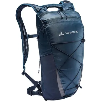 Ställ en fråga om Cykelryggsäck Vaude Uphill 8 BlåOavsett om du cyklar eller promenerar så har den pålitlig följeslagaren VAUDE Uphill 8 Lightweight Backpack en totalvikt på endast 340 gram. Trots den minimalistiska designen med massor av smarta funktionern kan du alltid räkna med full komfort. Huvudfack med asymmetrisk öppning, en stretchig nätficka och en sidoficka med dragkedja som ger smidig åtkomst till din telefon eller snacks utan att du behöver ta av den lätta cykelryggsäcken. Snörningen framtill har tre grundfunktioner: förvaring för en vind- eller regnjacka när huvudfacket är fullt, kompression för mindre laster och fäste för ett par stavar. Dess 3D-mesh på rygg och axelremmarna ger god ventilation, reflekterande detaljer är integrerat i designen, en port för vätskesystem och ett regnskydd i packväskan kompletterar funktionerna hos denna talangfulla.