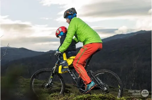 Den patenterade designen i gult EVA-skum ger barnen både stabilitet, komfort och självförtroende under cykelturerna. Dess unika främre position skapar en naturlig stabilitet och det mjukt dämpande materialet minskar både stötar och slag som uppstår av ojämn terräng. Den framåtriktade placeringen underlättar även kommunikationen mellan den vuxne och barnet, vilket är avgörande för att kunna öka barnet styrka, balans, koordination, självförtroende och kanske viktigast av allt ... deras njutning! Modellen passar till barn från 18 månader upp till en maximal vikt av 22 kg.
