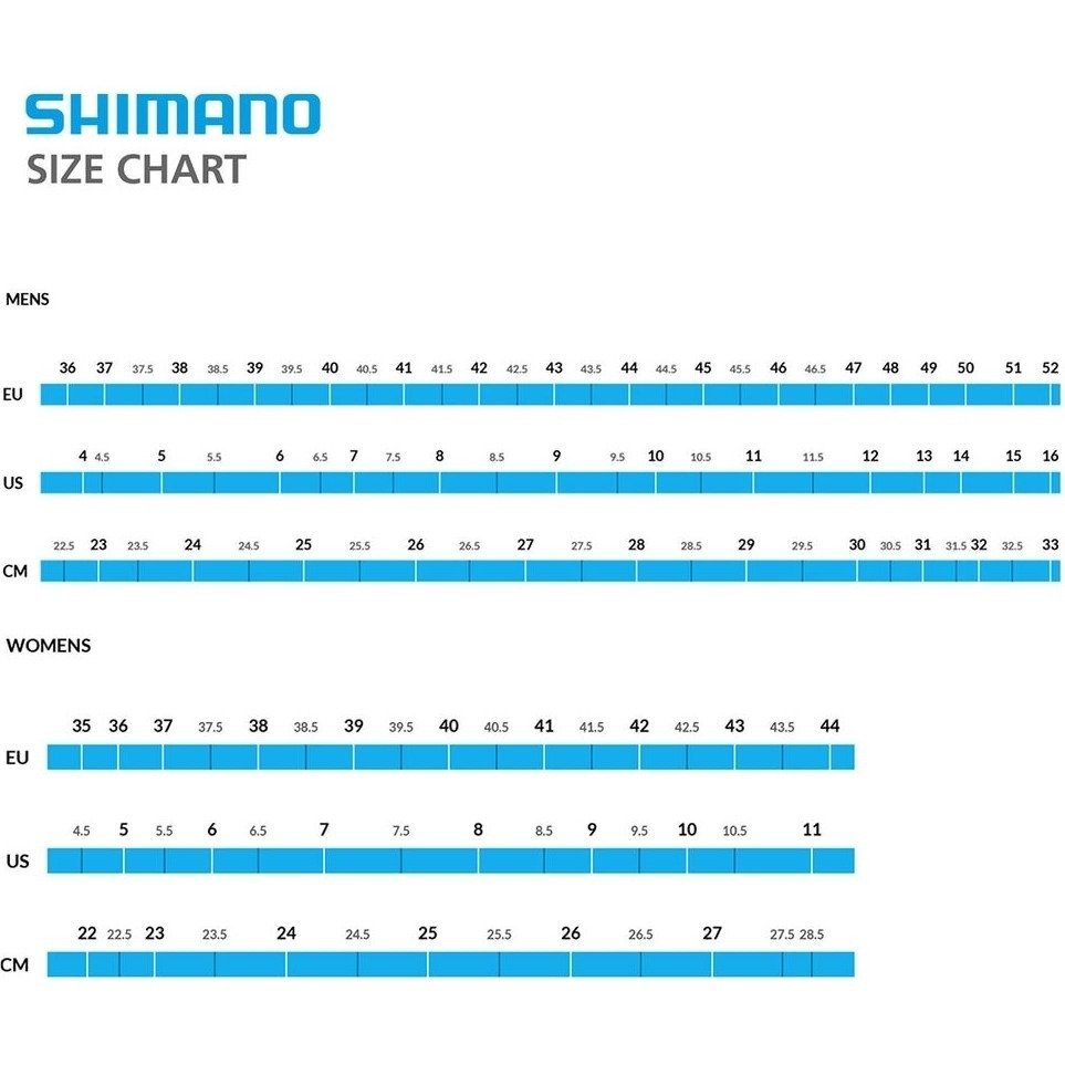 *Shimano är generellt små i storlekarna. Vi rekommenderar att du mäter din fot och kikar i storlekstabellen. Om du ligger mellan två storlekar bör du välja den större för bäst passform.