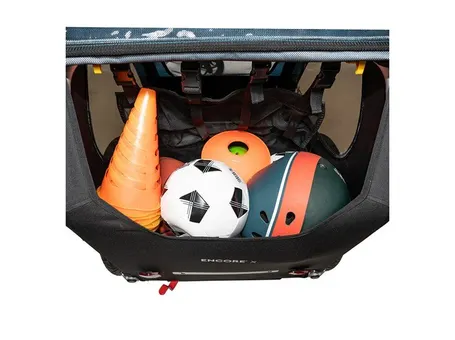 Vagnen är utrustad med en rymlig lastkapacitet på upp till 45 liter, vilket ger gott om plats för att packa med dig allt du behöver för en dag ute på cykeln. Den har också en stor bakre förvaringsficka för att hålla dina ägodelar organiserade och lättillgängliga.