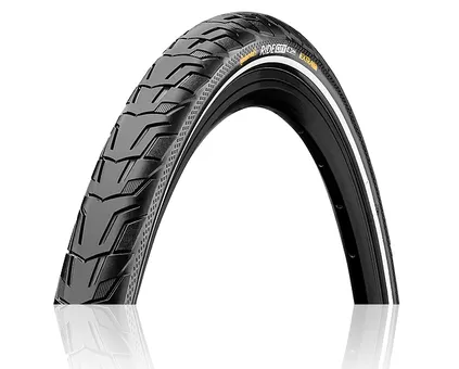 Ställ en fråga om Cykeldäck Continental RIDE City ExtraPuncture Belt 42-622 (28x1.60") svart/reflexPålitliga Continental RIDE City är ett slitstarkt stadsdäck med en tydligt markerad rullbana och en homogen mönsterdesign som ger en trygg körkänsla. Ett modernt touringdäck som är designat för att rulla med så lite motstånd som möjligt på hårdare underlag, samtidigt som det levererar överraskande bra grepp på lite ojämnare underlag.