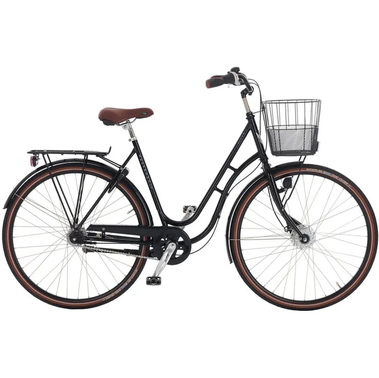 Den är dessutom generöst välutrustad redan från start, eller vad sägs om 7 näst intill underhållsfria navväxlar, en lätthanterlig fotbroms baktill och en pålitlig rullbroms framtill. Du kan dessutom addera en pakethållare med praktisk AVS-funktion, en generös främre korg, kraftfull LED-belysning, robust kedjeskydd, stabila skärmar, vattenresistent sadel med mjuk stoppning, breda kvalitetsdäck med punkteringsskydd samt ett godkänt ramlås som förhoppningsvis sätter skräck i klåfingriga cykeltjuvar och dramatiskt ökar chanserna att du får ha din vackra cykel i fred.