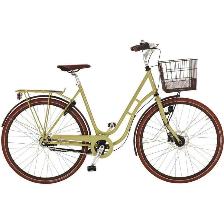 Den här versionen är såklart generöst välutrustad redan från start, eller vad sägs om 7 näst intill underhållsfria navväxlar, en lätthanterlig fotbroms baktill, en kraftfull skivbroms framtill samt en ställbar styrstam som ger dig möjlighet att justera vinkeln när du vill bli lite sportigare. Du kan dessutom addera en pakethållare med praktisk AVS-funktion, en generös främre korg, kraftfull LED-belysning, robust kedjeskydd, stabila skärmar, vattenresistent sadel med mjuk stoppning, breda kvalitetsdäck med punkteringsskydd samt ett godkänt ramlås som förhoppningsvis sätter skräck i klåfingriga cykeltjuvar och dramatiskt ökar chanserna att du får ha din vackra cykel i fred.