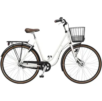 Cykel är dessutom generöst välutrustad redan från start, eller vad sägs om en lätthanterlig fotbroms baktill och en pålitlig rullbroms framtill. Du kan dessutom addera en pakethållare med praktisk AVS-funktion, en generös främre korg, kraftfull belysning, robust kedjeskydd, stabila skärmar, vattenresistent sadel med mjuk stoppning, breda kvalitetsdäck med punkteringsskydd samt ett godkänt ramlås som förhoppningsvis sätter skräck i klåfingriga cykeltjuvar.