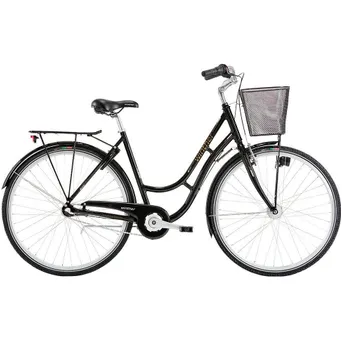 Utrustningen är väl tilltagen och modellen är utrustad med både en rejäl pakethållare, robusta skärmar, en generös främre korg, ett väl täckande kedjeskydd, stöd och ett godkänt lås som förhoppningsvis ser till att du får ha din nya cykel i fred. Dess effektiva belysning ser till att du syns ordentligt och kan fortsätta cykla även när solen har gått ner, och tack vare däckens reflexrand så syns du bättre även från sidan. En mångsidig cykel för dig som vill kunna trampa till stranden, mataffären eller till dina vänner och bekanta utan att behöva titta på klockan eller fundera vart du ska förvara dina tillhörigheter.