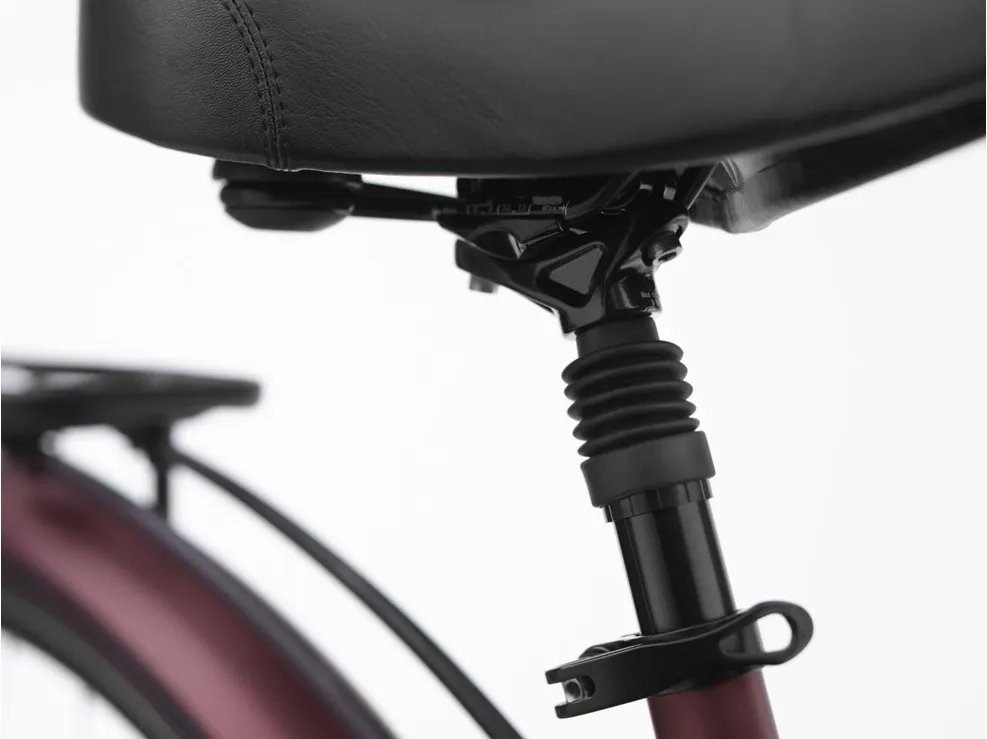 När du vill få stopp på ekipaget så har du tillgång till effektiva hydrauliska skivbromsar som kräver minimalt med underhåll och samtidigt ger dig pålitlig bromsprestanda året runt och i alla typer av väder. Cykeln är dessutom utrustad med färgmatchade skärmar, ett stadigt stöd, en ergonomisk cookpit med bra överblick och ett godkänt lås. En smart dämpad sadelstolpe och en bekväm komfortsadel med stötdämpande material säkerställer en smidig resa medan ett praktiskt låsfäste håller cykeln stadigt på plats när du lastar och lossar last på den främre pakethållaren.