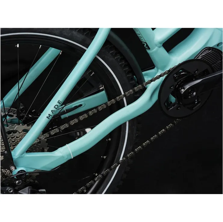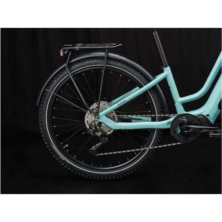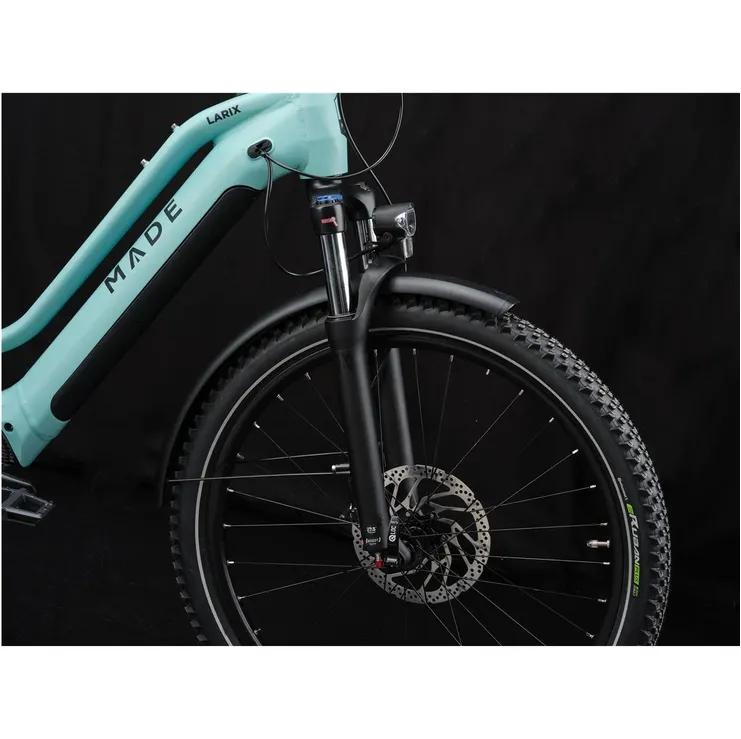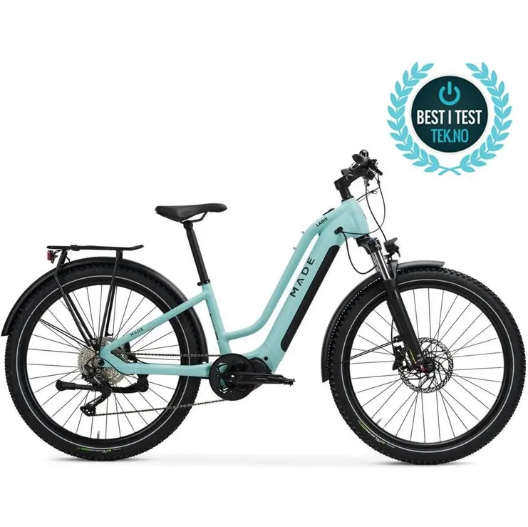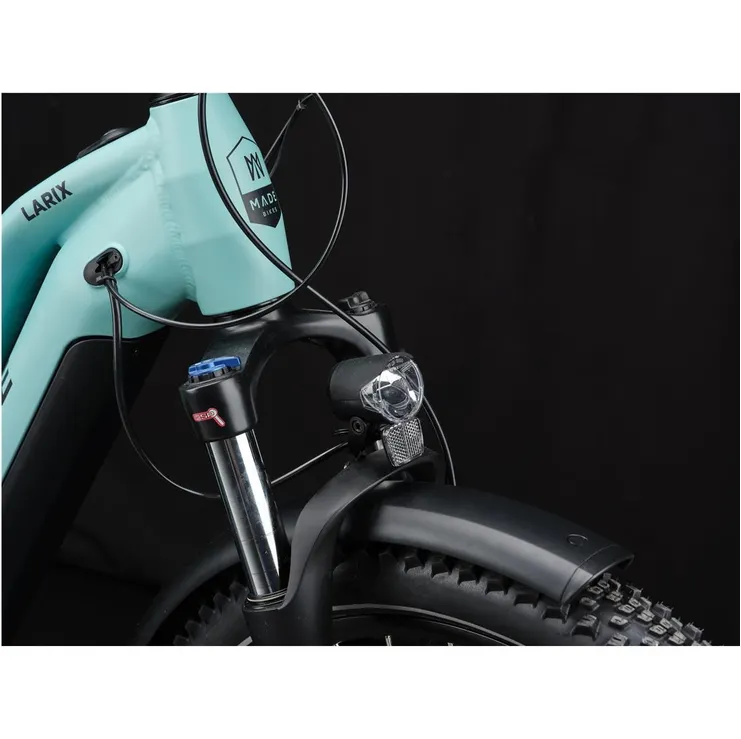 Ställ en fråga om Elcykel hybrid Made Larix Lady Light Turquoise MattKraftfull, välutrustad och körglad eMTB med grym framkomlighet