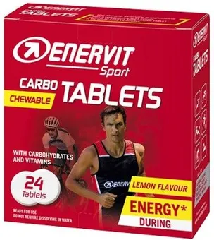 Enervit Sport Carbo Tablets är effektiva och smidiga tugg/sugtabletter med kolhydrater, vitaminer och mineraler du enkelt kan ha med dig i träningsväskan.