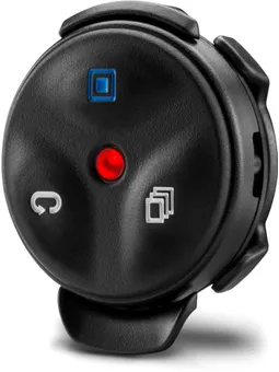 Med Fjärrkontroll Garmin Edge styr du din Edge 1000-cykeldator utan att ta händerna från styret. Fjärrkontrollen har 3 knappar och använder trådlös ANT+-anslutning för att markera varv och bläddra igenom sidor. Du kan också programmera den tredje knappen utifrån en lista med förinställda funktioner.