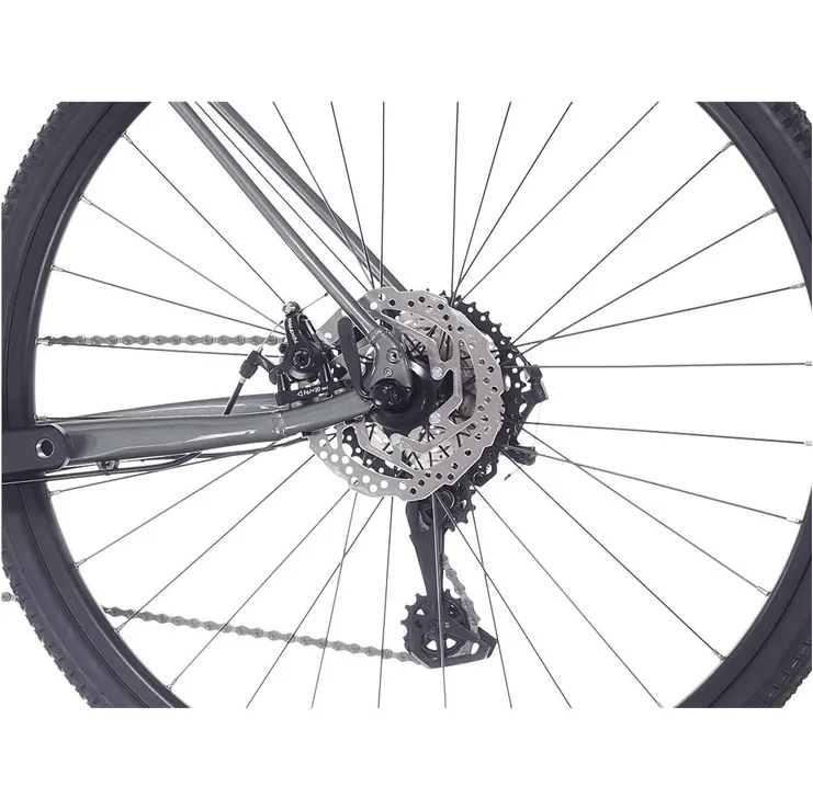 Komponentmässigt har den en beprövad drivlina med 20 driftsäkra växlar som består av ett vevparti med dubbla klingor kombinerat med en generöst stegad kassett, vilket sammantaget ger en bred utväxling med fokus på lite högre farter. Och tack vare en låg totalvikt så trivs den här klättringsvilliga hojen lika bra när det går undan i utförslöporna, oavsett vilket underlag du väljer... ledorden är mångsidighet, framkomlighet och bibehållet hög komfort!