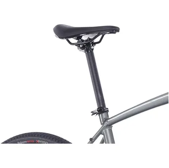 Det eleganta chassit består av en ram i kvalitativt aluminium med rätt vinklar som levererar fin respons när du lägger tryck på pedalerna. Lägg därtill en välbalanserad gravelgeometri som garanterar att du kan köra både fort och länge med en tydlig överblick av omgivningen, och därmed får du full kontroll på allt som händer runt omkring dig i trafiken. Den trivs såklart på asfalten men fungerar kanske som allra bäst där en traditionell landsvägsracer har svårt att ta sig fram (löst grus är inga som helst problem) och där en MTB ofta kan känns lite långsam eller trög.