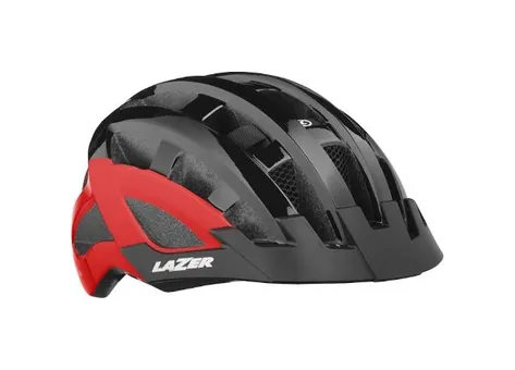 Ställ en fråga om Cykelhjälm Lazer Compact DLX svart/rödDen populära Lazer Compact DLX är både säker, lätt och riktigt bekväm, vilket gör den perfekt för både pendlare, MTB-fantaster och elcyklister. Denna nyligen helt uppdaterade version har dessutom både smart LED-belysningen baktill samt ett inbyggt insektsnät, och den erbjuder flera nya designalternativ. Kombinationen av mjukt EPS-skum och en stötdämpande In-mold konstruktion sprider slagkrafterna vid en eventuell krasch, vilket ger dig en pålitligt hög skyddsnivå.