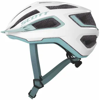 Ställ en fråga om Cykelhjälm Scott Arx vit/blåDen populära Scott Arx är både lätt, bekväm och snygg vilket gör den till det självklara valet för den medvetne MTB- eller landsvägscyklisten. En kvalitativ allroundhjälm med låg vikt och hög komfort där praktisk funktion möter hög säkerhet och en stilrent sportig design.
