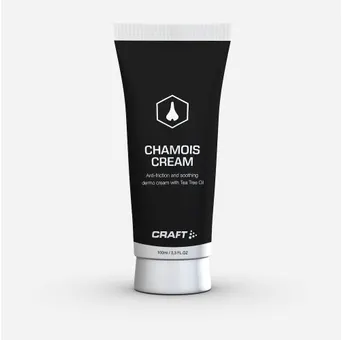 Ställ en fråga om Hudkräm Craft Chamois Cream 100 mlCraft Chamois Creme är en friktionsreducerande och lugnande hudkräm med Tea Tree-olja. En skyddande salva som helt enkelt appliceras direkt på de mest utsatta områdena. Där skapas då som en osynlig mikrofilm som ger ett bra skydd mot både obehagligt skav och kemisk irritation, helt perfekt för cykling och andra typer av uthållighetssporter.