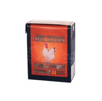 Non-Stop Dogwear Energy Paté Fresh Chicken 12Pkär hälsosam hundmat, utvecklad med högkvalitativa ingredienser och miljövänlig förpackning. Ingredienserna kommer från de allra främsta råvarorna för att säkerställa en blandning som är rik på proteiner av hög kvalitet och låga fuktnivåer. Non-Stop Dogwear använder kött från kyckling, i motsats kycklingmjöl eller andra bearbetade ingredienser. De värdesätter miljömässig hållbarhet och har därför använt en miljövänlig Tetra Recart®-förpackning. Fresh Chicken består huvudsakligen av kycklingkött, som är rik på proteiner av hög kvalitet. Potatis och grönsaker säkerställer viktiga vitaminer, mineraler och fibrer. Laxolja är tillfört för att ge friskare hud och mjukare päls. Olivolja är tillsatt på grund av de omättade fettsyrorna och polyfenolernas anti-inflammatoriska egenskaper. De naturliga källorna till antioxidanter bidrar till att minska effekten av fria radikaler. Omega-3, D-vitamin, järn, kalcium och fosfor från naturliga källor bidrar till att reparera och stärka ben. Tillfört glukosamin och kondroitin stöder underhållet av brosket.