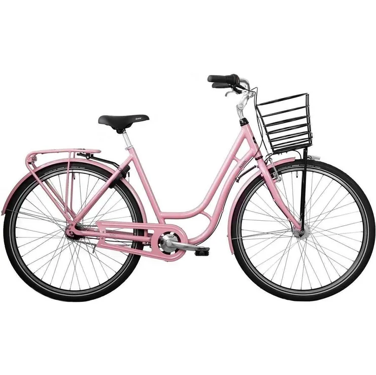 Det eleganta chassit består av en kvalitativ aluminiumram med klassiskt böljande former och ett föredömligt lågt insteg som gör cykeln extra smidig att kliva på och av. Men formerna är inte bara vackra utan ser till att du kan hitta en bekväm körställning. Lägg därtill en komfortabel sadel som effektivt skyddar dina mjukdelar samt en praktiskt ställbar styrstam gör det enkelt att hitta den vinkel som passar just dig. Kort sagt - En flexibel helhet som ser till att du enkelt kan hitta en bekvämt upprätt körställning, vilket både ger en avslappnad position och ser till att du får tydlig uppsikt över dina alla dina medtrafikanter. En smart liten detalj är den lilla fjädern som sitter fäst mellan gaffeln och ramen som ser till att hjulet pekar rakt fram när cykeln är parkerad, vilket verkligen underlättar när man ska lasta korgen full med alla varor du köpt på ditt lokala snabbköp.
