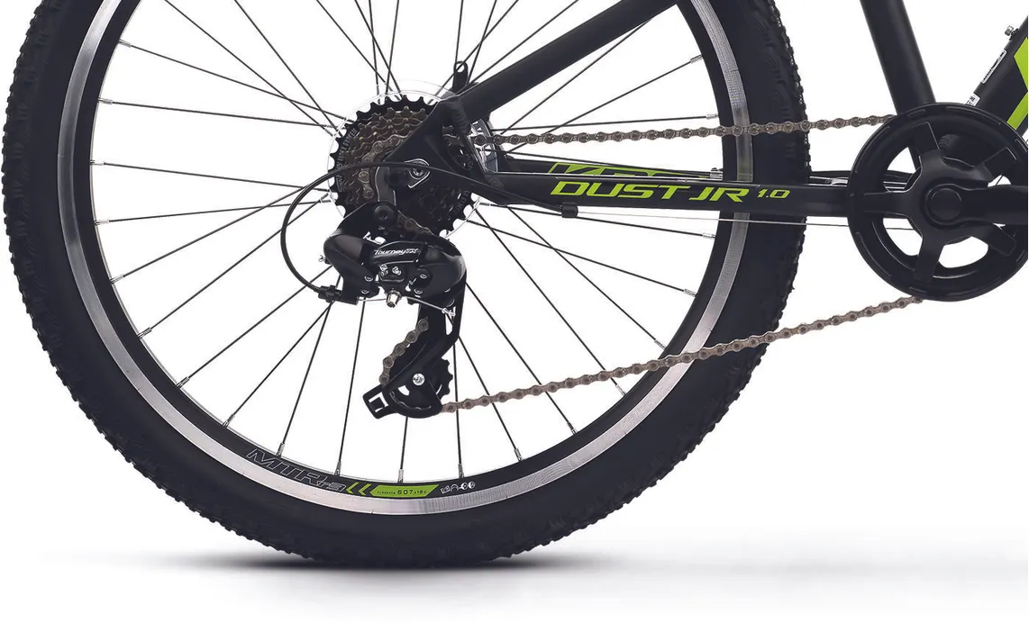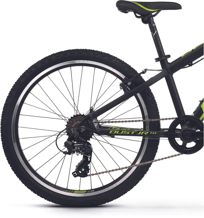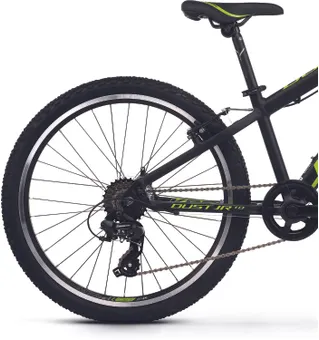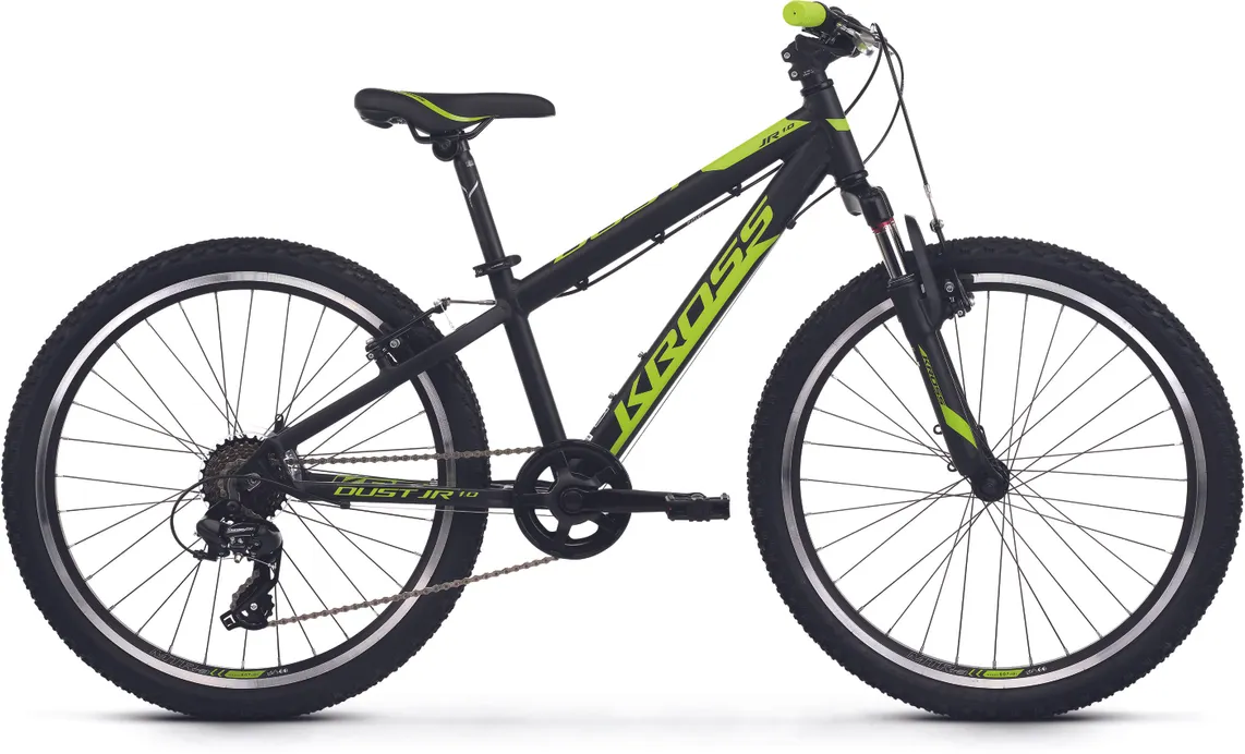 Ställ en fråga om Kross Dust JR 1.0 24" 8-växlad mattsvart/limeRobusta Kross Dust JR 1.0 24" är en prisvärd juniormodell med massor av cykelglädje som är skapad för lättare turer i skogen, på stigarna och på grusvägarna. Visst, den har enklare utrustning än sina större syskon i serien men den har funktionella komponenter och den passar dig som kör kortare sträckor och som kanske inte alls planerar att köra hårt.