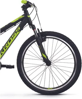 En dämpade framgaffel från Kross med 50 mm slaglängd kombineras med stabila 24"-hjul som ser till att du tar dig fram med hög bekvämlighet och bra grepp, vilket bidrar till en roligare upplevelse i sadeln när underlaget är lite sämre. Inbromsningarna sker med hjälp av traditionella v-bromsar, de är både lätt att underhålla och ser till att du slipper släpa på onödigt vikt.