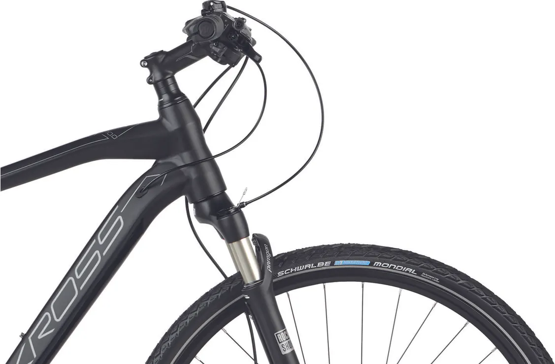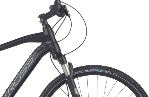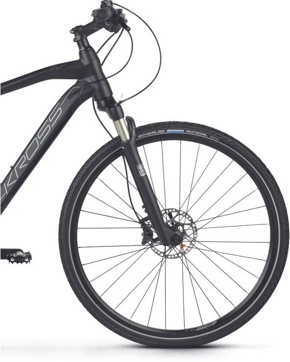 Den kompetent Kross Evado 10.0 är en imponerande hybridcykel med brett register som trivs lika bra på asfalten som ute på grusvägarna. Det här är en lätt, snabb och tålig hoj som är utrustad med mycket av det som ingår på betydligt dyrare modeller. Tack vare dess låsbar dämpad framgaffel och högkvalitativa hydrauliska skivbromsar har du alltid hög komfort och dessutom bromsförmåga som verkligen matchar fartresurserna.