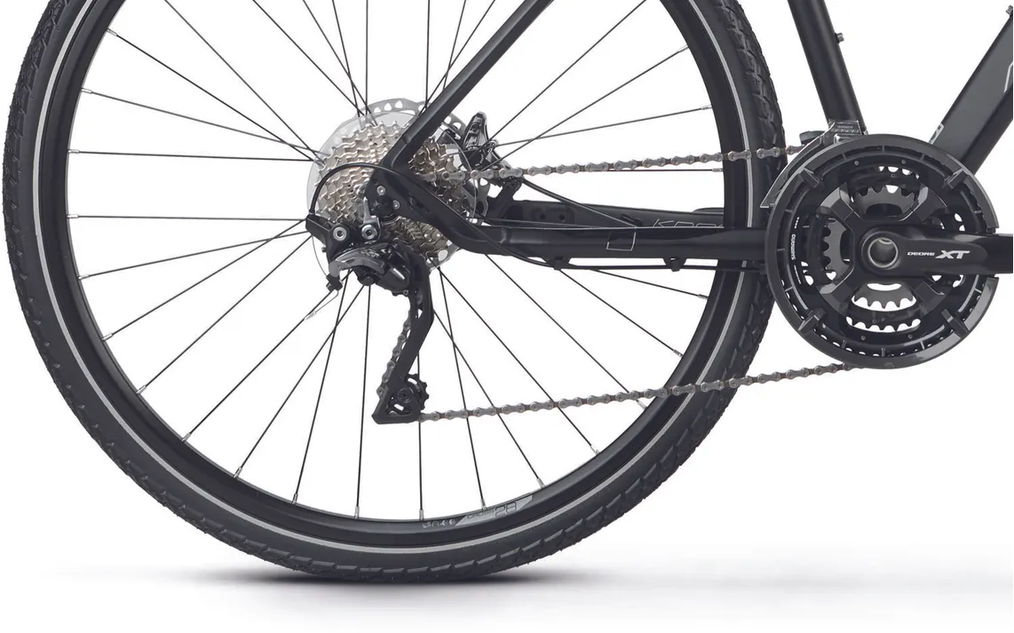Under motorhuven sitter en extremt pålitlig 30-växlad drivlina från Shimano (XT/Deore) som ser till att snabb körning på plana sektioner och tuffare uppförsbackar inte utgör några som helst problem. Och när du vill få stopp på ekipaget så har du tillgång till kraftfulla hydrauliska skivbromsar, vilket ser till att du alltid har effektiv bromsverkan som matchar fartresurserna, oavsett underlag, väder eller årstid.
