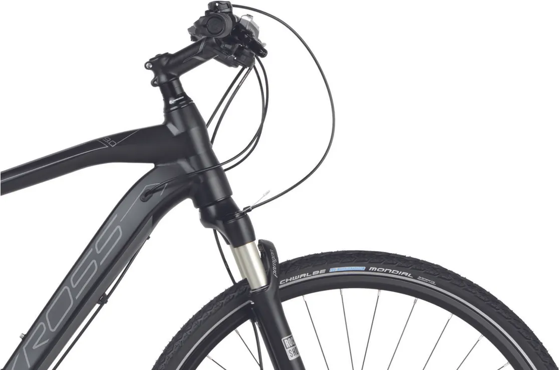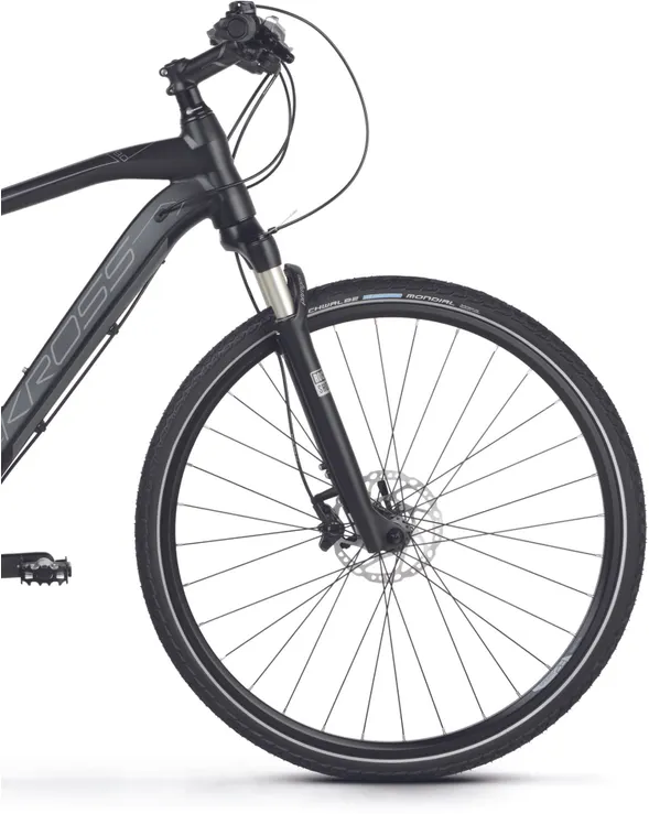 Den kompetent Kross Evado 9.0 är en imponerande hybridcykel med brett register som trivs lika bra på asfalten som ute på grusvägarna. Det här är en lätt, snabb och tålig hoj som är utrustad med mycket av det som ingår på betydligt dyrare modeller. Tack vare dess låsbar dämpad framgaffel och kvalitativa hydrauliska skivbromsar har du alltid hög komfort och dessutom bromsförmåga som verkligen matchar fartresurserna.