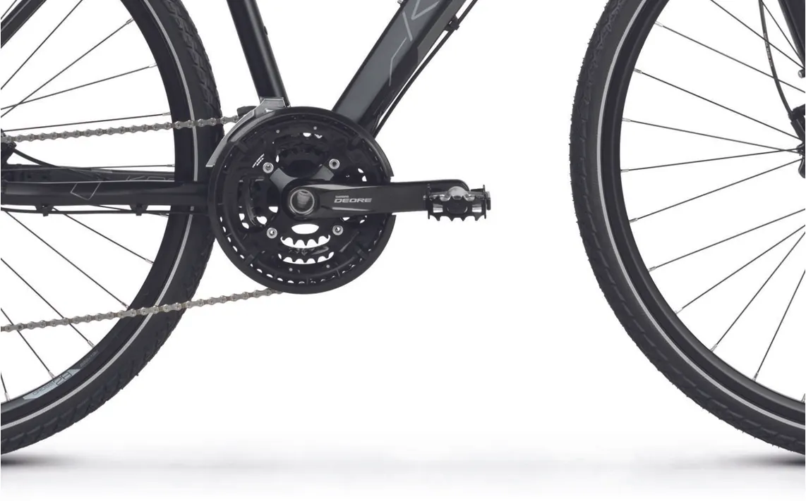 Under motorhuven sitter en extremt pålitlig 30-växlad drivlina från Shimano (XT/Deore) som ser till att snabb körning på plana sektioner och tuffare uppförsbackar inte utgör några som helst problem. Och när du vill få stopp på ekipaget så har du tillgång till kraftfulla hydrauliska skivbromsar, vilket ser till att du alltid har effektiv bromsverkan som matchar fartresurserna, oavsett underlag, väder eller årstid.